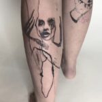 Abstraktní tetování žena, čáry na lýtko
