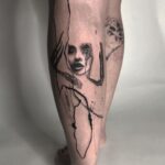 Abstraktní tetování žena, čáry na lýtko