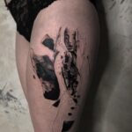 Abstraktní tetování žena, symboly na bok stehna