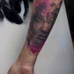 Abstraktní tetování, žena, včelka, tvary na předloktí