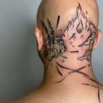 Abstraktní tetování, živel oheň, luční kvítí, květiny na hlavu a krk