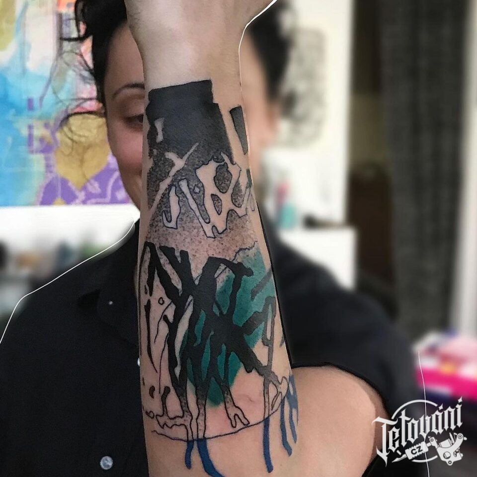 Abstraktní tetování, znaky a symboly, čáry na předloktí
