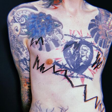 Abstraktní tetování znaky a symboly, čáry na rameno