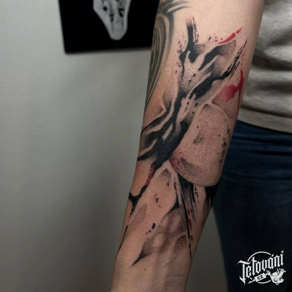 Abstraktní tetování znaky a symboly, měsíc na předloktí