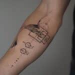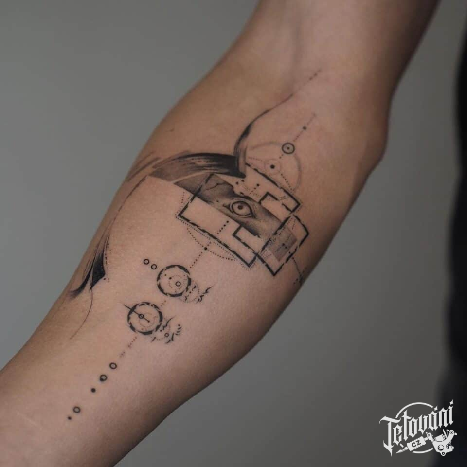 Abstraktní tetování znaky a symboly na předloktí