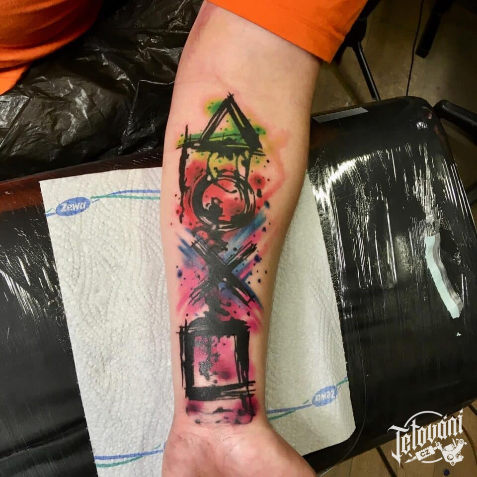Abstraktní tetování znaky a symboly, tvary na předloktí