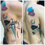 Abstraktní tetování znaky a symboly z filmů a pohádek Disney, ruce na bok