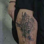 Abstraktní tetování zvíře lvice na stehno