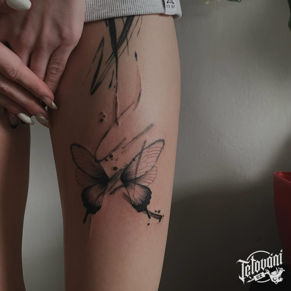 Abstraktní tetování zvíře motýl na stehno