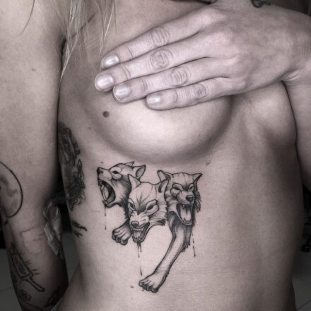 Abstraktní tetování zvíře vlk, čáry na ruku