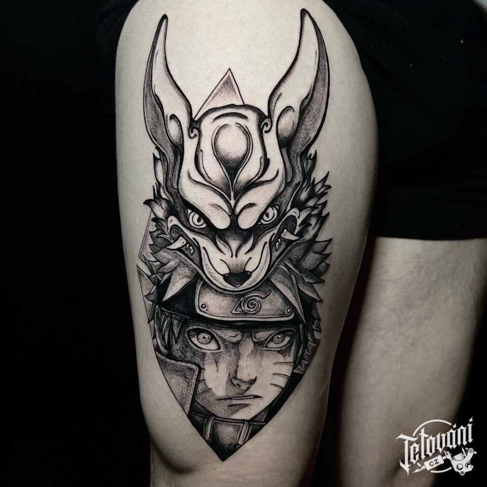 Anime tetování z filmů a pohádek Naruto na stehně