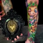 Tetování z filmů a pohádek zvíře motýl na holeňi