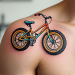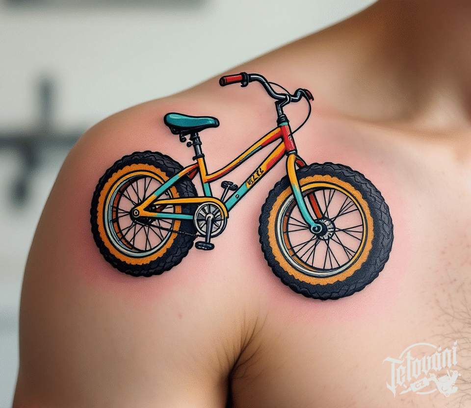 Barevné tetování dětské kolo, sport pod klíční kost