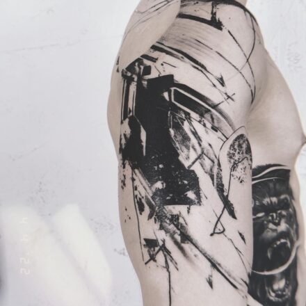 Abstraktní tetování lebka a čáry, pruhy na předloktí