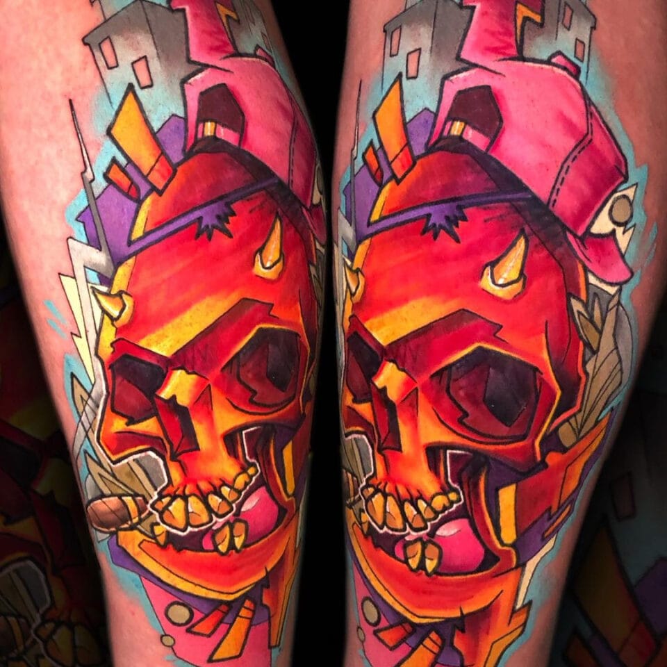 Barevné tetování lebka n...