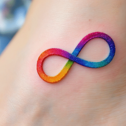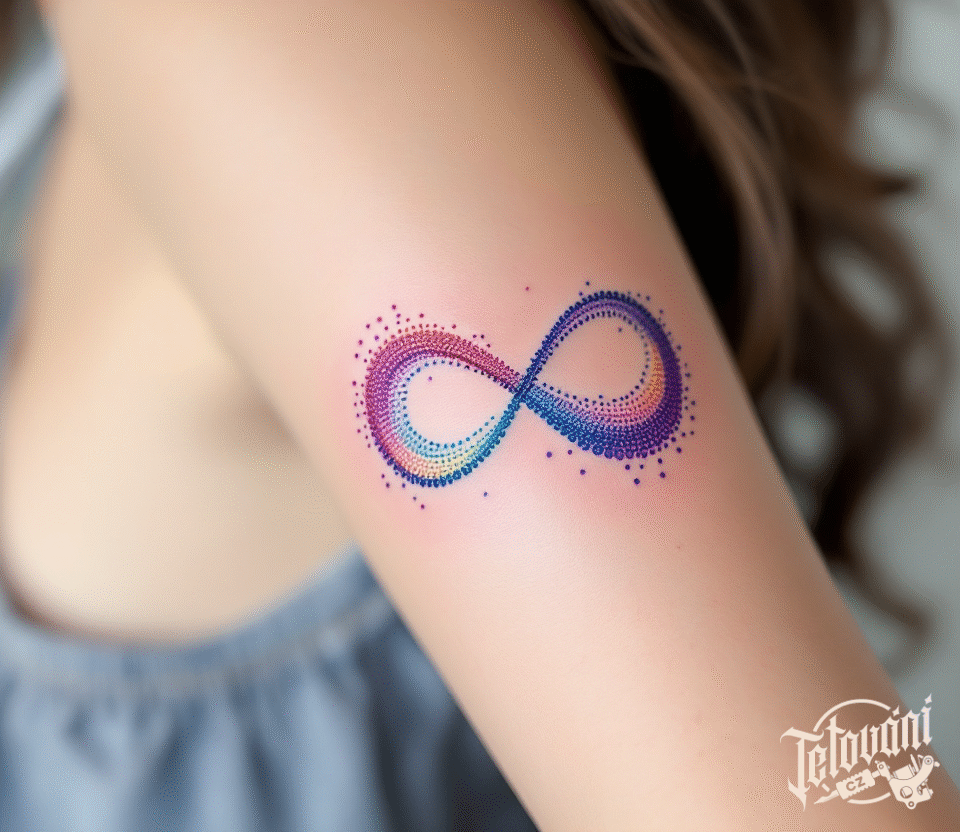 Barevné tetování ležatá osmička na rameno