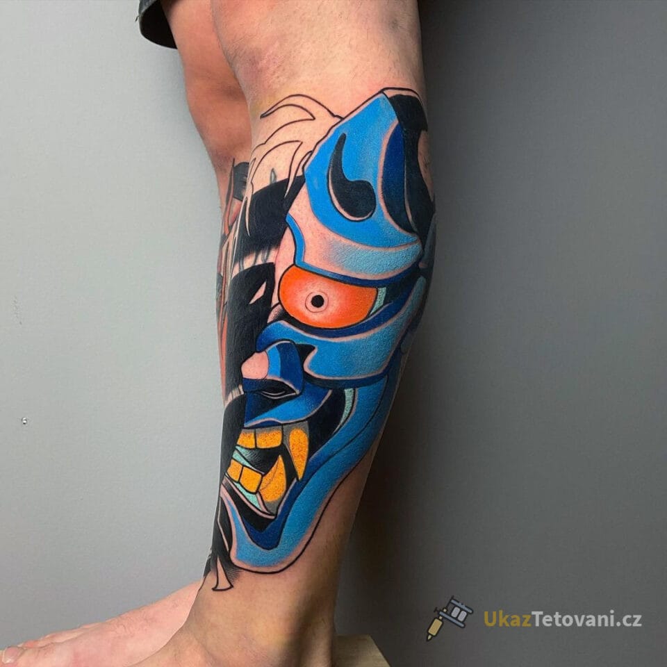 Barevné tetování maska s okem na lýtko