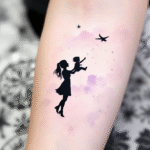 Barevné tetování matka a dcera, rodiče, rodina na předloktí