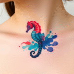 Barevné tetování mořský koník na hrudník