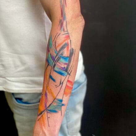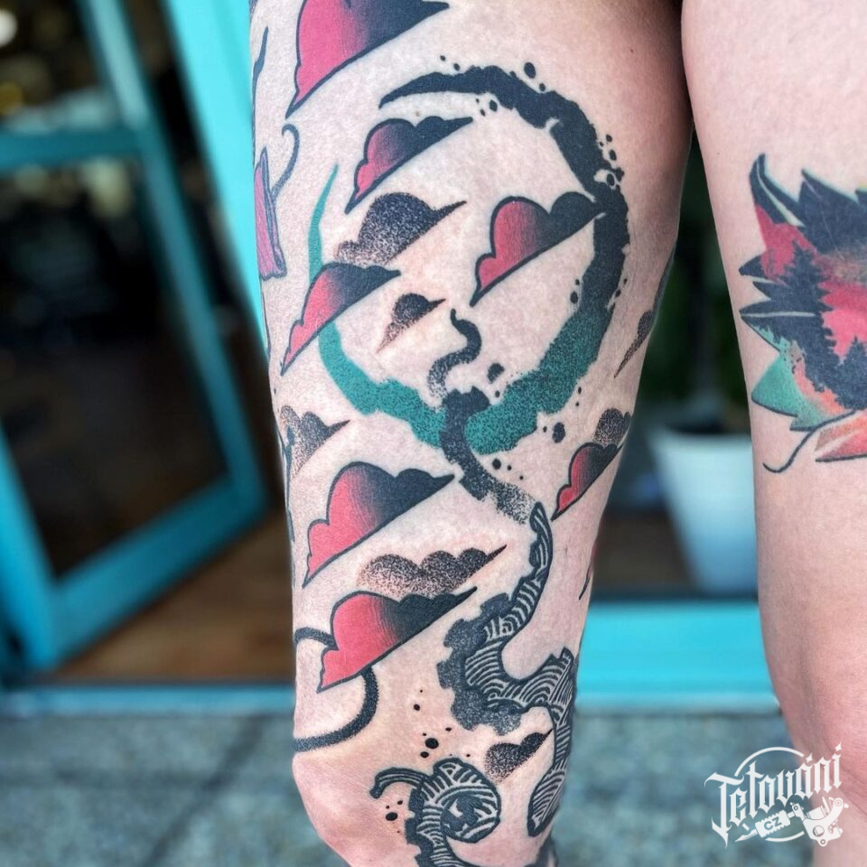 Barevné tetování na stehně