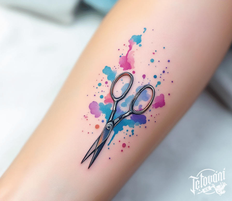 Barevné tetování nůžky na předloktí