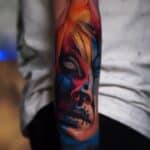 Barevné tetování portrét ženy na předloktí