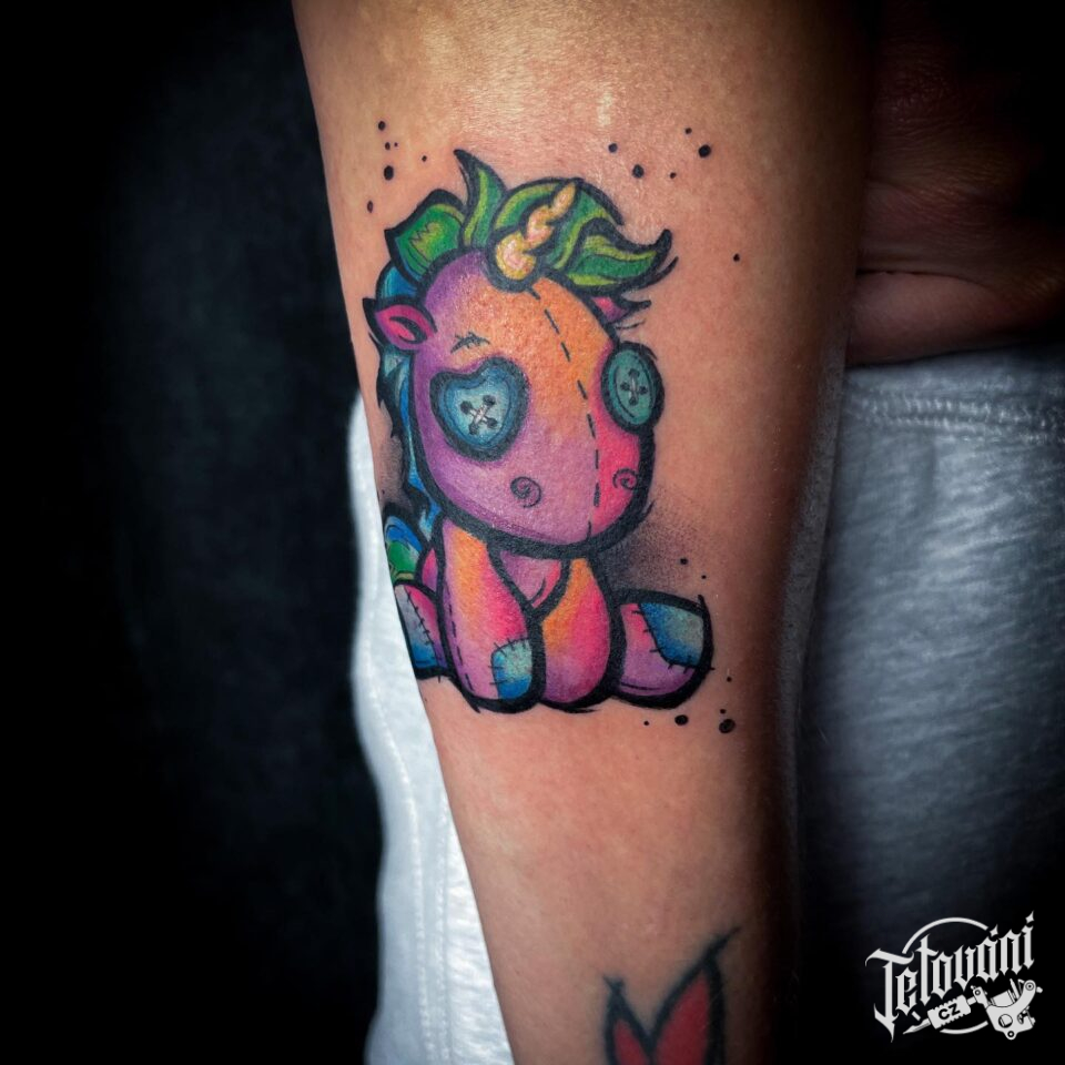 Barevné tetování postavička, jednorožec, zvíře na předloktí