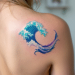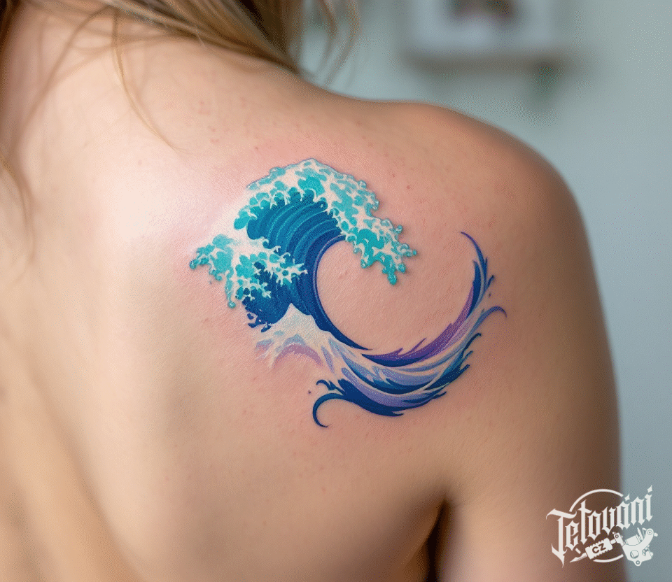 Barevné tetování živel vlna na lopatku