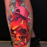 Barevní tetování lebky, tvary na lýtko