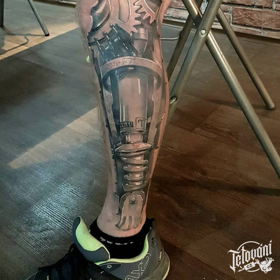 Biomechanické tetování na noze
