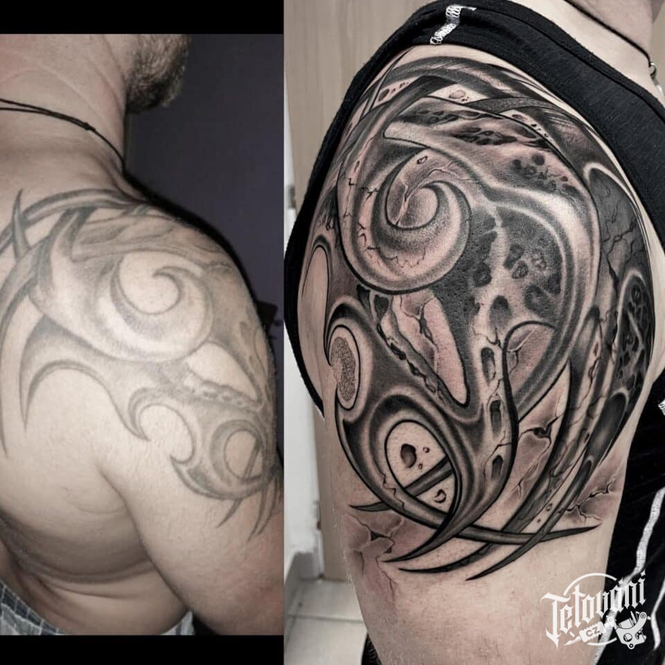 Blackandgrey tetování na rameni