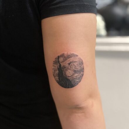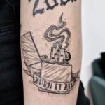 Tetování znaky a symboly, živly, zapalovač na stehně