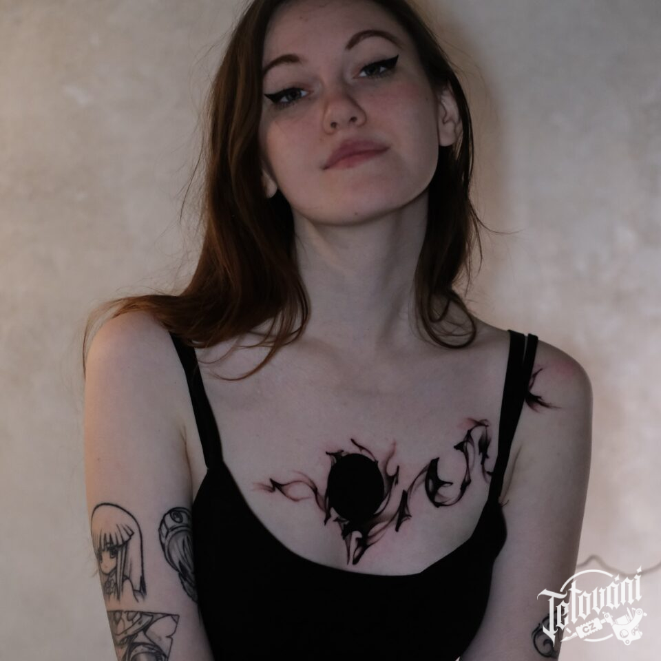Blackwork tetování, znaky a symboly na hrudi
