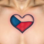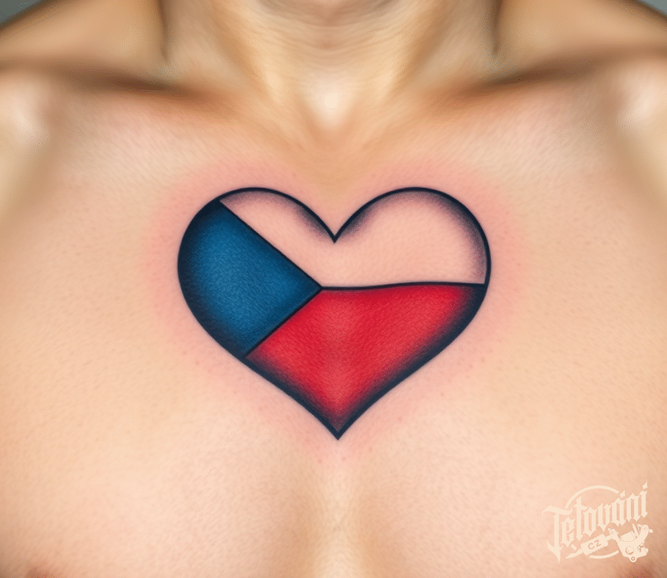 České tetování, česká vlajka ve tvaru srdce na hrudníku