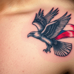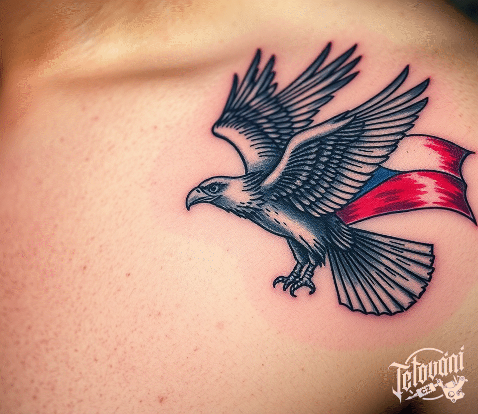 České tetování, české vlastenecké, zvířata, orel a česká vlajka pod klíční kostí