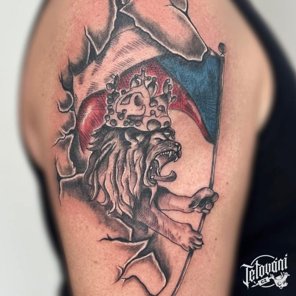 České tetování lva, česká vlajka na rameno