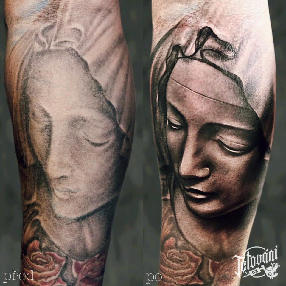 Cover-up tetování náboženství, Panna Marie na předloktí