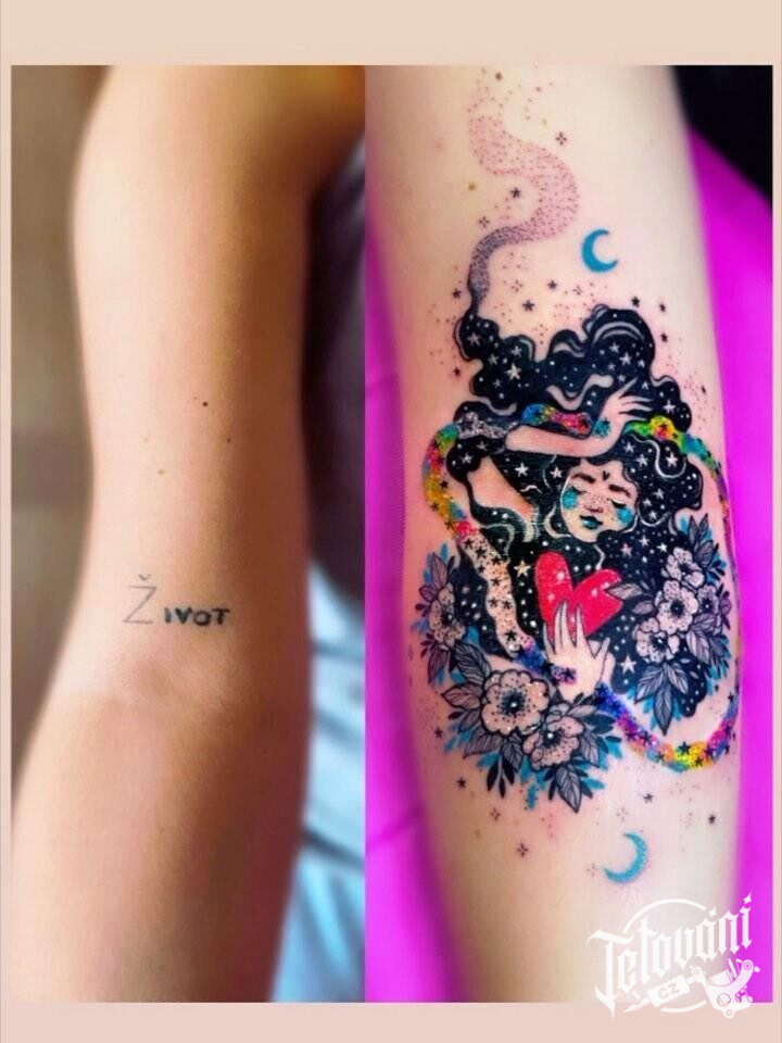 Coverup tetování symbolika ženy na předloktí