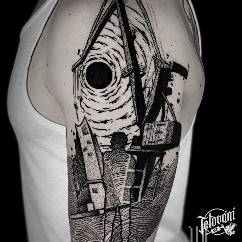 Dotwork tetování na rameni