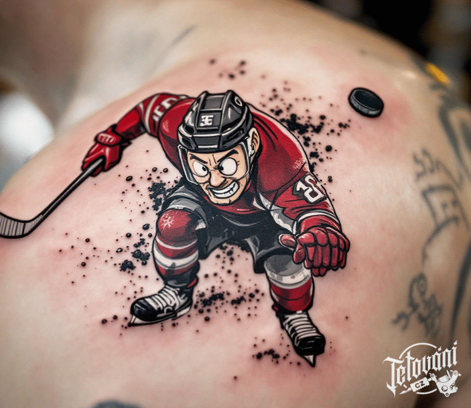 Hokejové tetování, sport, postavička hokejisty na rameni