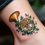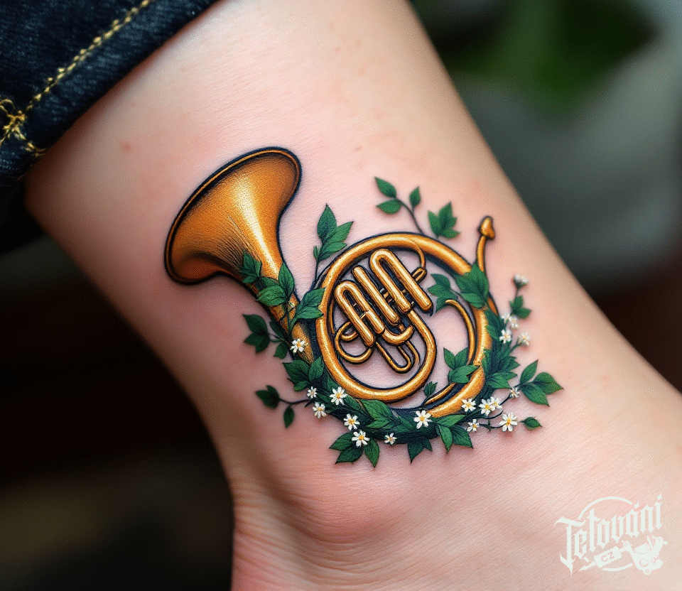Hudební tetování, předměty, hudební nástroj na kotníku