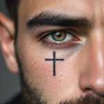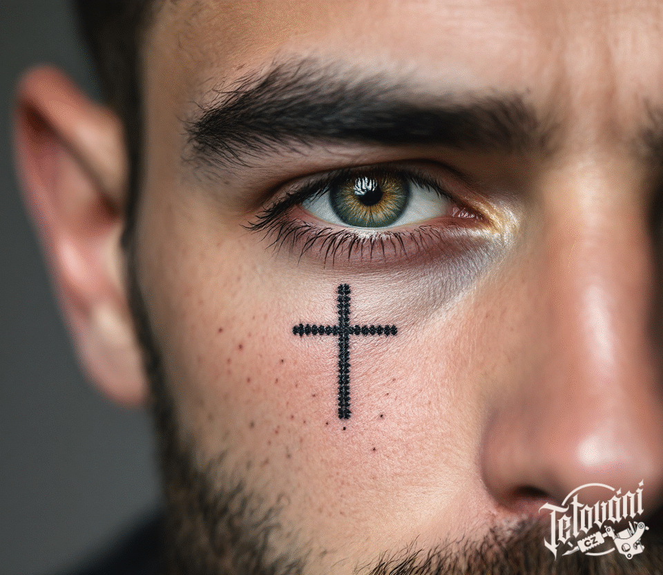 Jemné tetování kříž pod oko