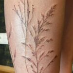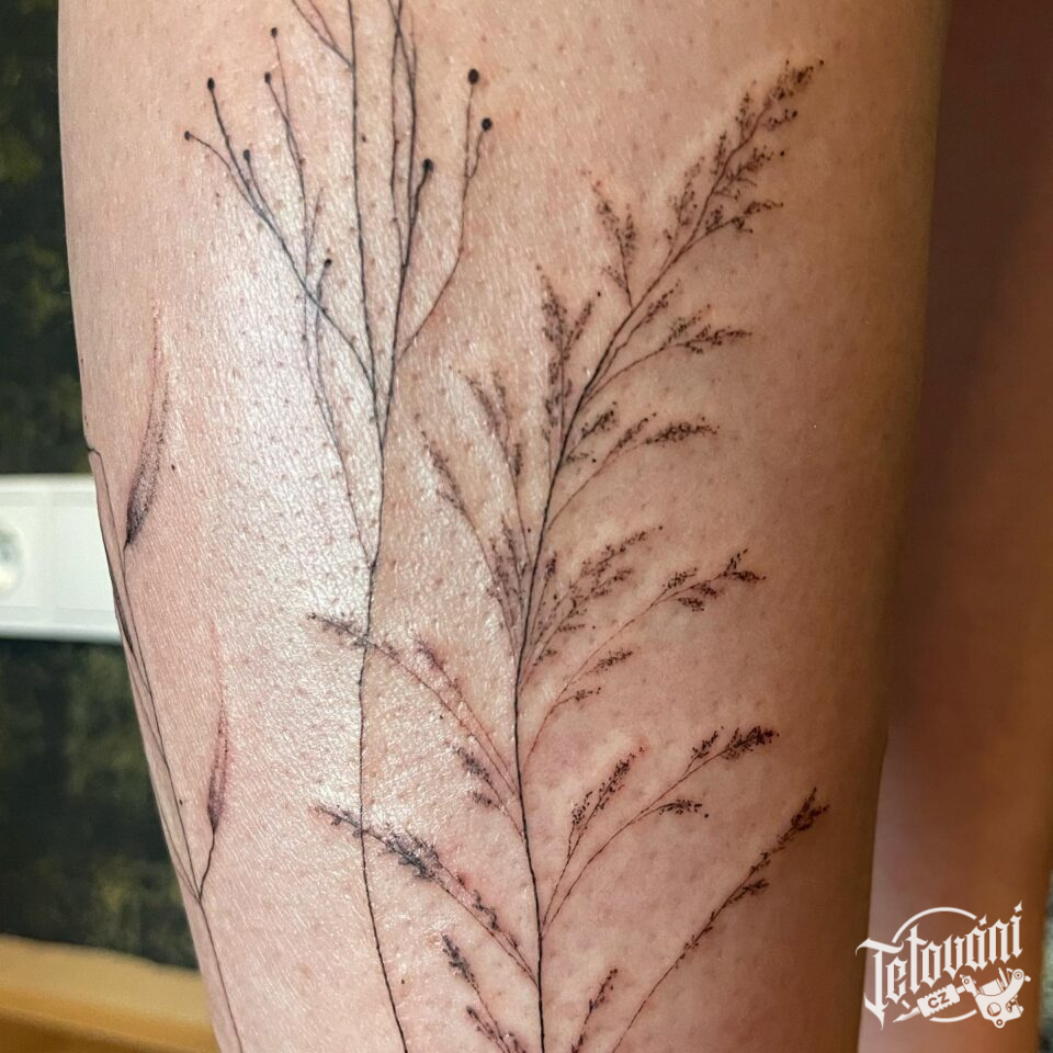 Jemné tetování květiny, luční kvítí na holeň