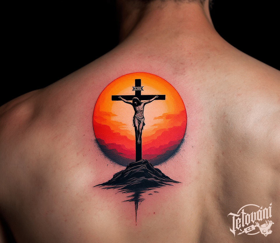 Křesťanské tetování, náboženství, Ježíš Kristus na kříži na zádech