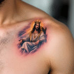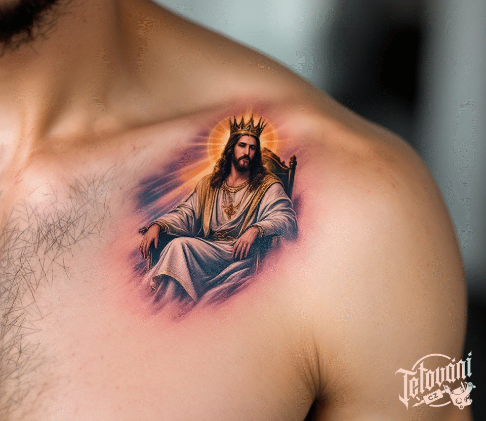 Křesťanské tetování, náboženství, Ježíš Kristus s korunou pod klíční kostí