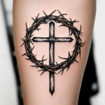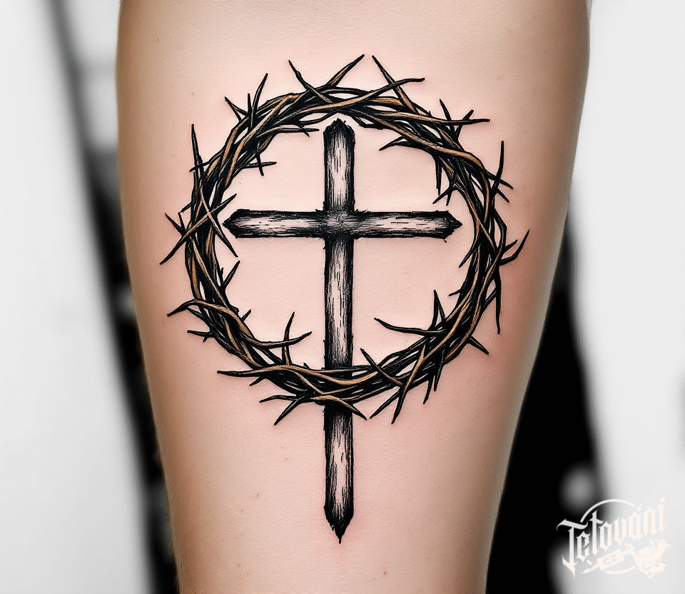 Křesťanské tetování, náboženství, kříž s věncem na předloktí