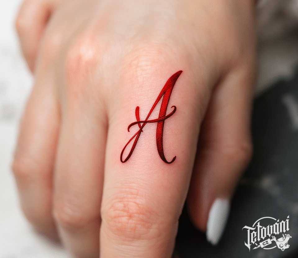 Malé tetování písmeno A na prst