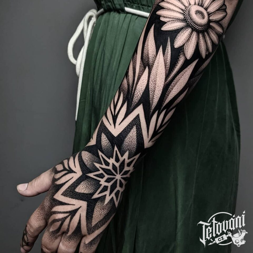 Mandala s kopretinou na předloktí
