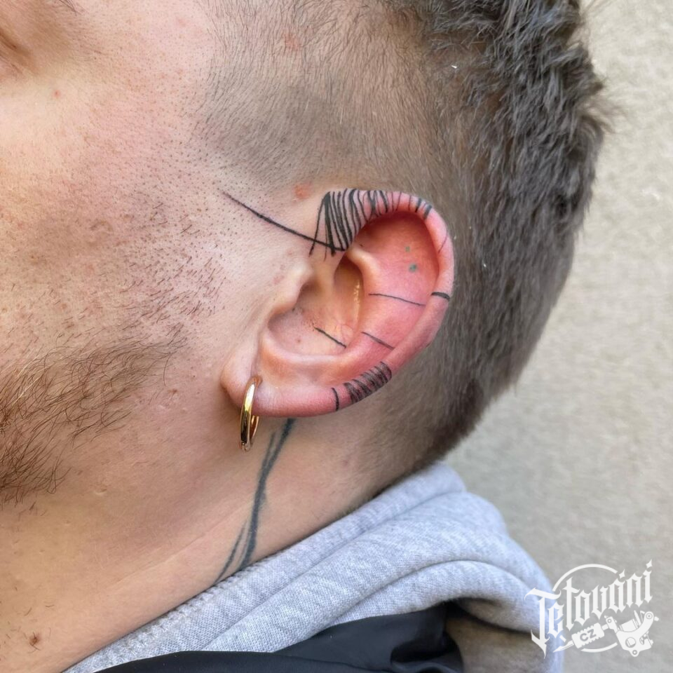 Minimalistické tetování, čáry na ucho