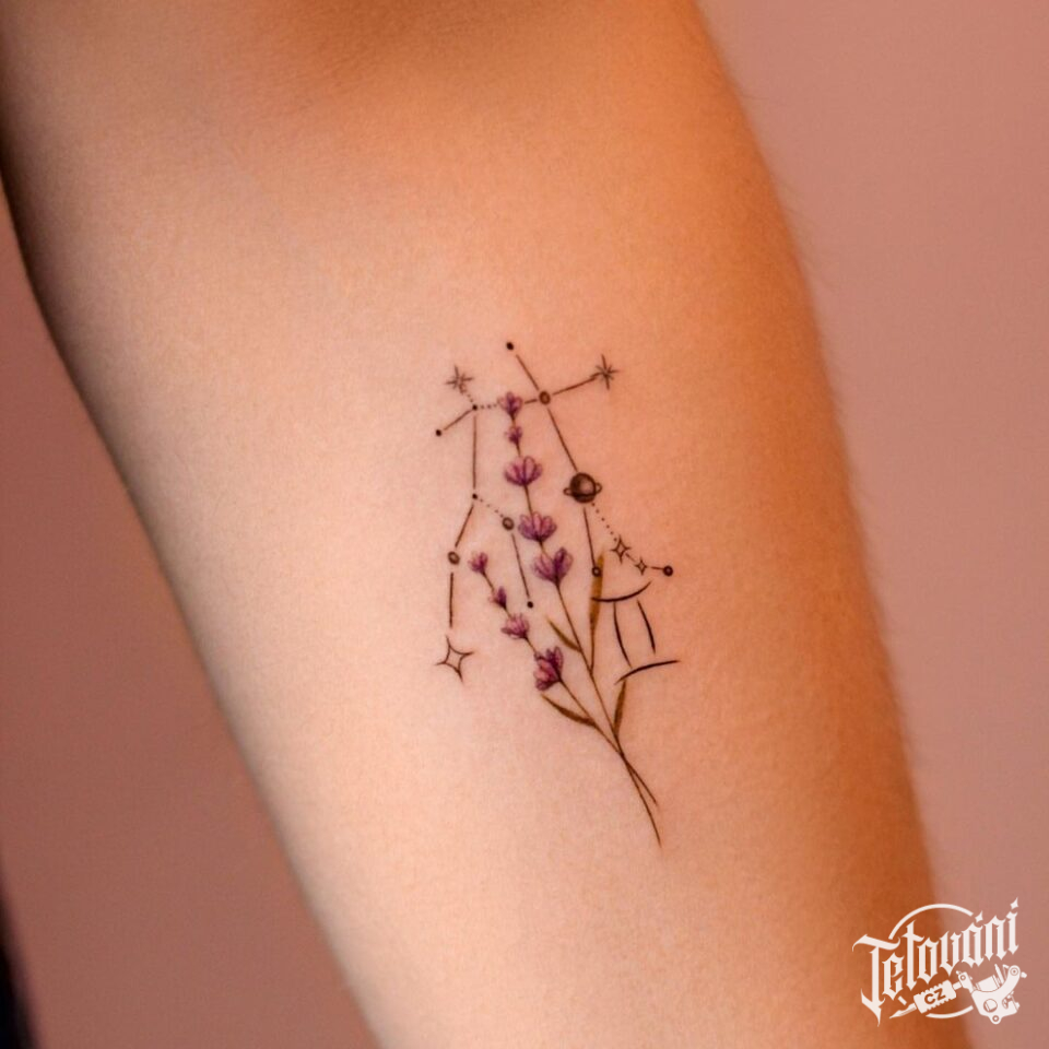 Minimalistické tetování, květiny, hvězdy na předloktí